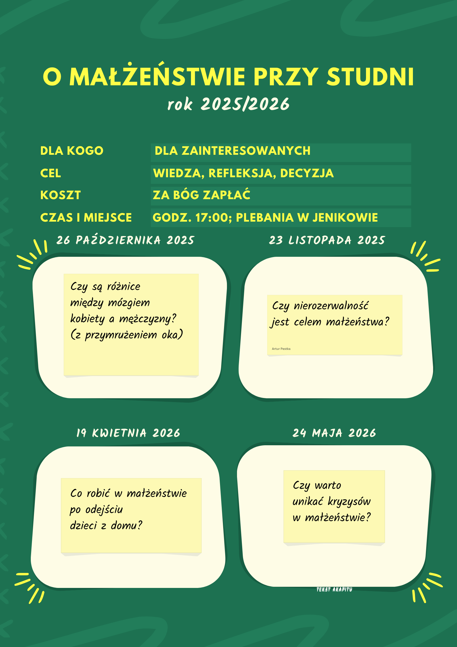 Dziś jest niedziela, 26 październik 2025. Imieniny: Ewarysta, ŁucjanaSpotkania "O małżeństwie przy studni"